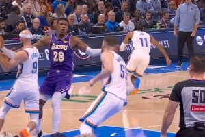 GIF-八村塁被拉拽导致失误