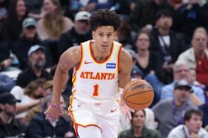 老鹰球星杰伦·约翰逊出战40分16秒,19投10中,三分5中4,罚球11中7,爆砍31分18篮板14助攻7抢断的全能数据,四项数据均创生涯新高,也成为NBA历史首个达成该数据的球员。