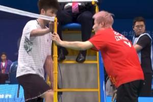 体育资讯11月17日讯 全运会羽毛球男单1/4决赛,石宇奇在第二局6-3领先时因伤退赛,翁泓阳晋级4强。